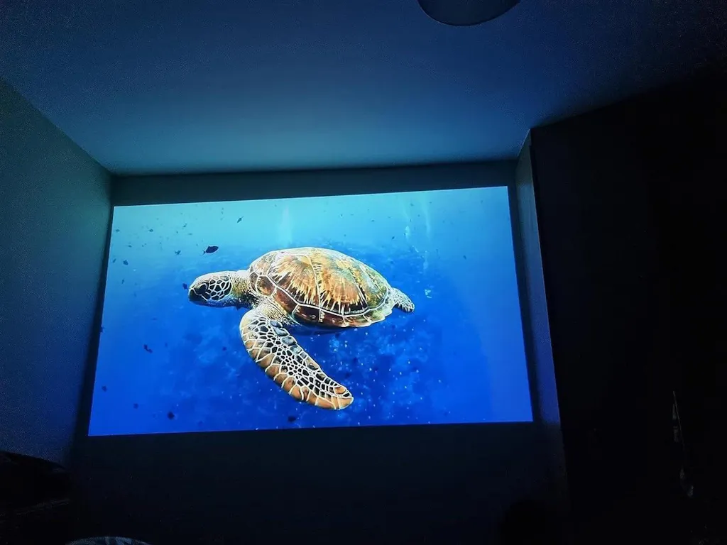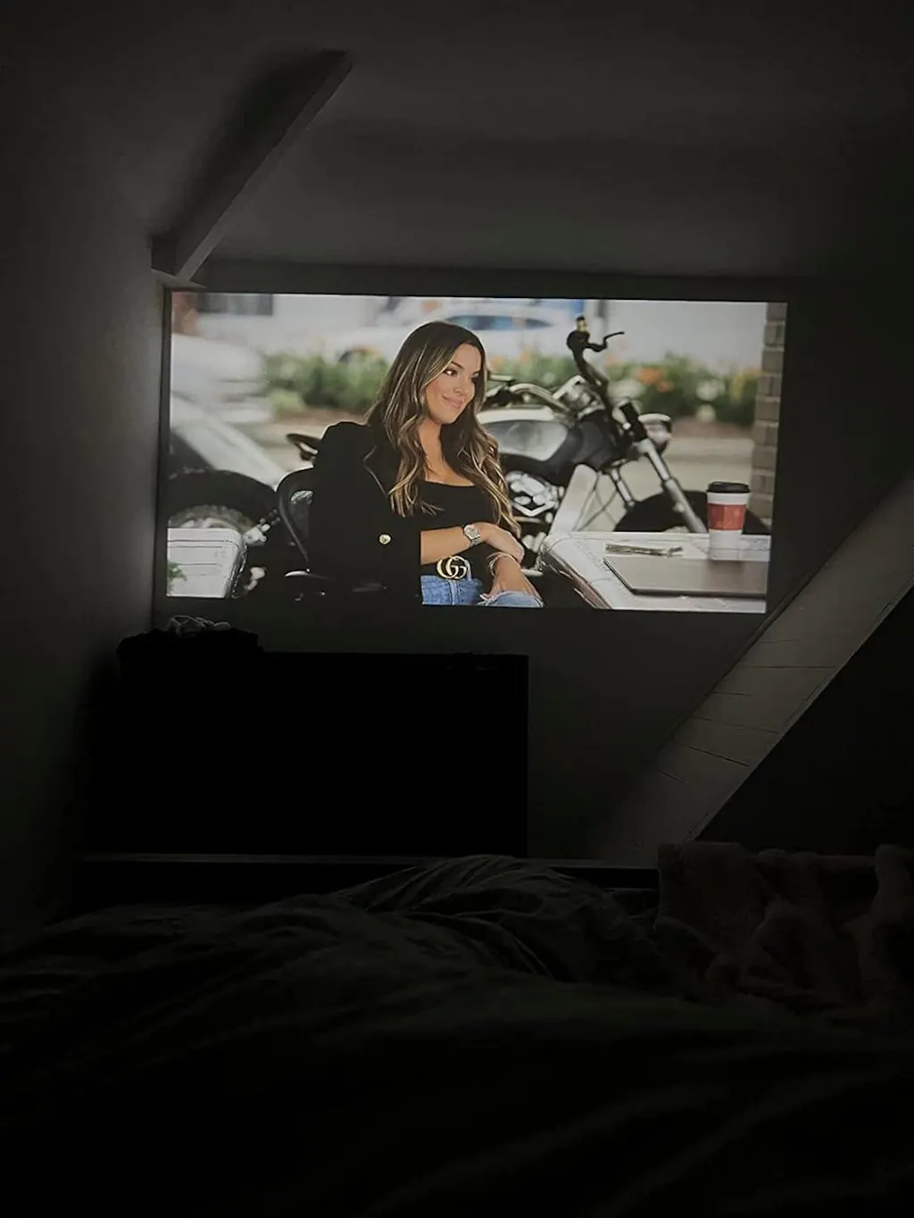 he picture, even from the angle we need to position the projector at, is amazing. It’s projected onto a white wall. We have been watching movies every night since we got it. We’ve never been happier.