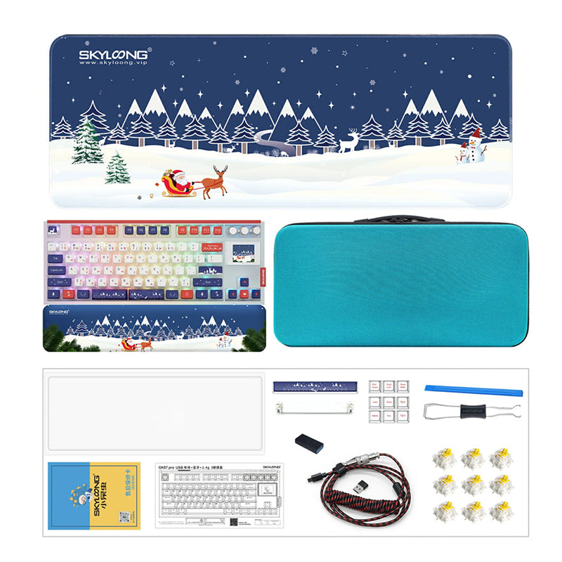 This luxurious Skyloong package will make the perfect Christmas present, complete with a GK87Pro Keyboard, chic black Desktop Mat, classy Wrist Rest and stylishly wrapped Cable.