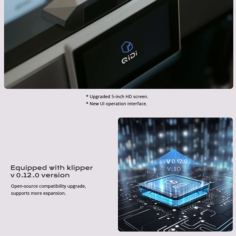 Print Size (W*D*H): 305*305*280mm XY Structure: CoreXY ZAxis: Dual Independent Lead Screw Motors 10mm linear shafts and screws Print Head Temperature: ≤370℃ Extruder Gear: Direct Extruder Hardened Steel Gears Nozzle: Bimetal Nozzle Nozzle Diameter: 0.4mm(0.2/0.6/0.8mm optional) Filament Diameter: 1.75mm Printing Platform: 6mm Aluminum Substrate Heating Bed Printing Plate: Dual-Sided Textured PEI Plate Hot Bed Temperature: ≤120℃ Max Speed of Tool Head: 600mm/s Acceleration: ≤20000mm/s^2 Operating System: Windows, MacOS, Linux Automatic Leveling: Hands-free Automatic Leveling Auxiliary Part Cooling Fan: Yes Chamber Circulation Fan: Yes (with activated carbon air filter) Chamber Temperature (PTC Heater): 2nd Gen Up to 65°C Independent Chamber Heating Supported Filament: PLA, ABS, ASA, PETG, TPU, PA, PC, Carbon/ Glass Fiber Reinforced Polymer, etc. Filament Cutter: Yes Filament Tangle Detection: Yes Filament Run Out Sensor: Yes Input Shaping: Yes Power Loss Recovery: Yes Voltage: 100-240VAC, 50/60Hz Rated Power: 450W+400(Chamber Heating) Display Screen: 5 Inch 800*480 Touch Screen Storage: 32G EMMC and USB2.0 Flash Drive Camera: Low Framerate Camera (Up to 1080P) Timelapse Supported Connectivity: WiFi 2.4G/Ethernet/USB Slicer: QIDI Studio and other third-party software, such as Orca, PrusaSlicer, etc. File Formats for Slicing: STL, OBJ, 3MF, STEP, STP |